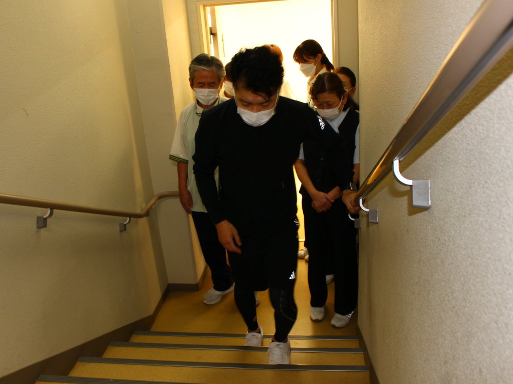 運動不足は転倒及び腰痛のリスクが高まります。そこで、施設のフロア移動をする際にはエレベーターではなく階段を使用するのをお勧めしています。