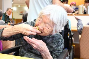 ご利用者も職員も、初めて見るおやつに興味津々👀