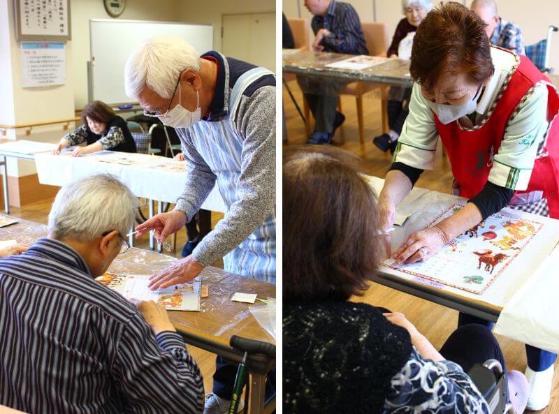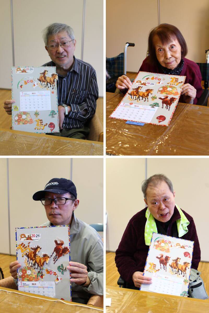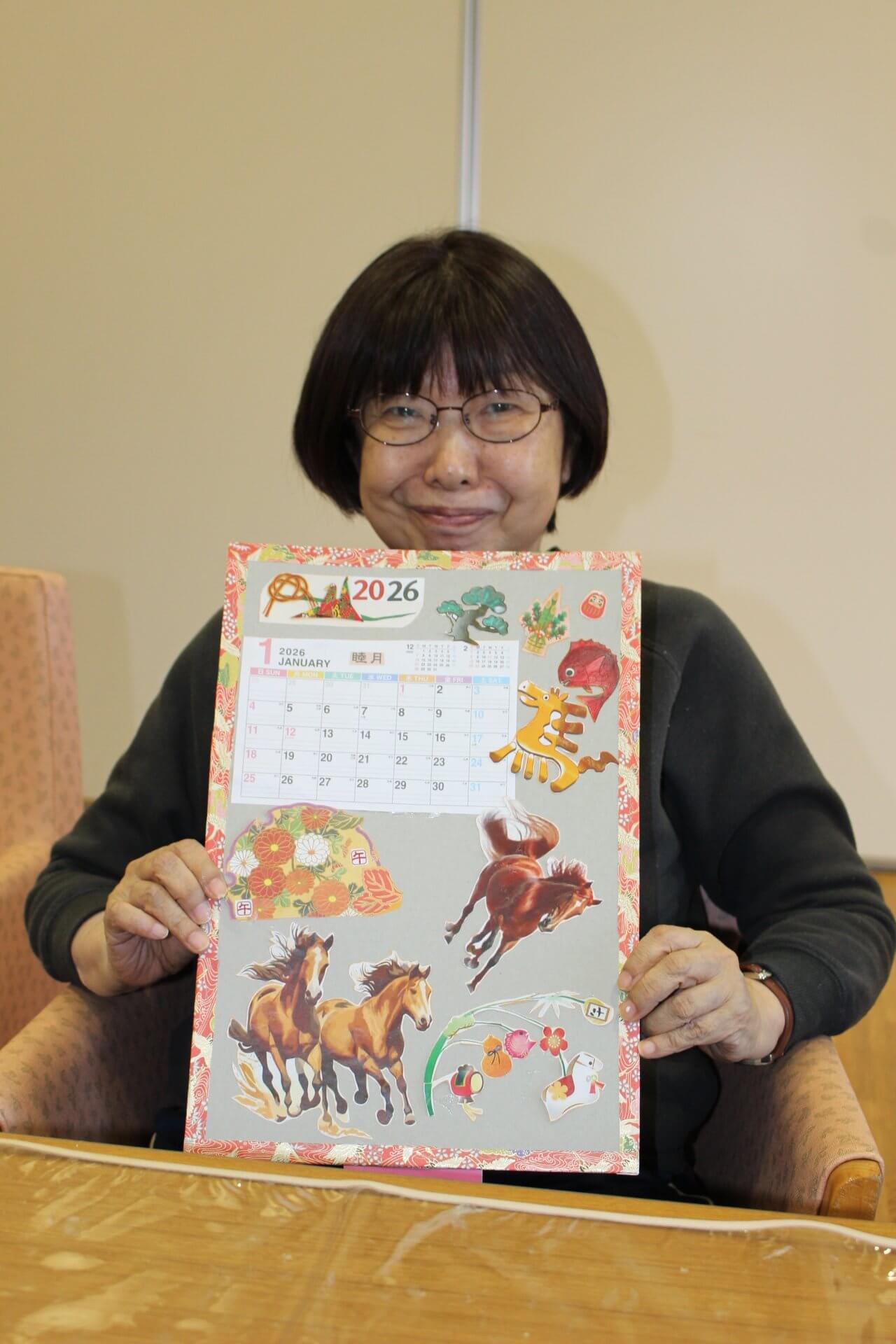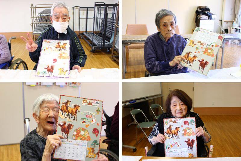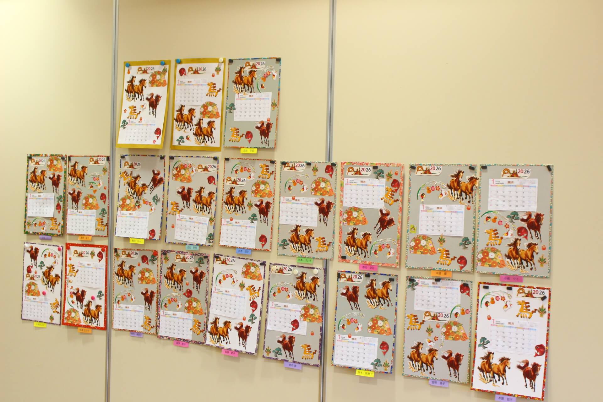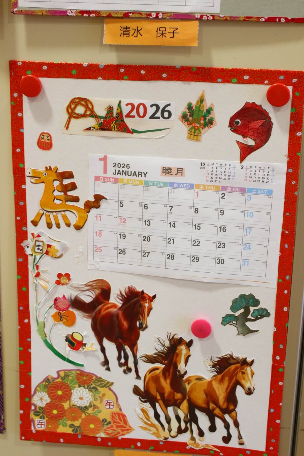 カレンダーの台紙に様々な馬の切り抜きや門松を切って貼って完成です🎠