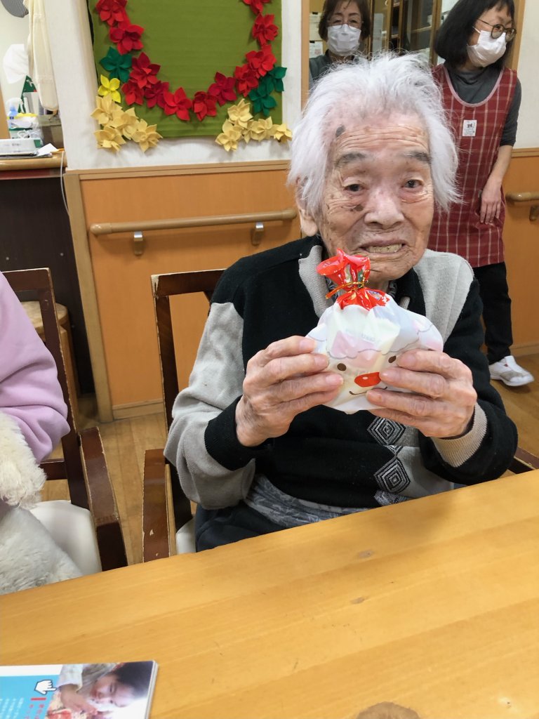 クリスマス会ではサンタさんが皆様にプレゼントをお渡ししました。ケーキを召し上がっていただき雰囲気もしっかり楽しめましたね。また新年も色々なイベントを行っていきます。