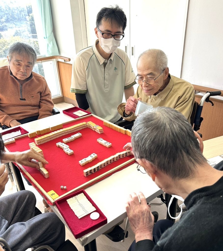 毎年恒例の麻雀大会。麻雀を打つ眼差しは真剣でした!