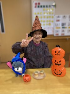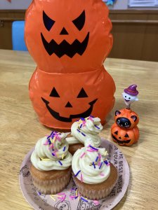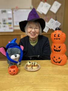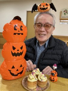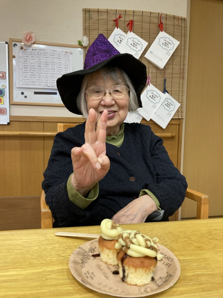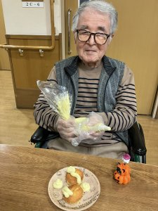 利用者様には、マドレーヌの上にさつまいもクリームを絞って頂きました(^▽^)/
