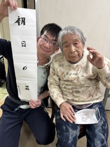 1月3日(土)に愛生苑デイでは、新春書初めを行いました(^_-)-☆