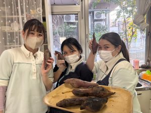 おやつには、バーベキューコンロで焼き芋🍠 蜜が沢山でてきて、あまーいねっとりとした焼き芋でした(≧▽≦)