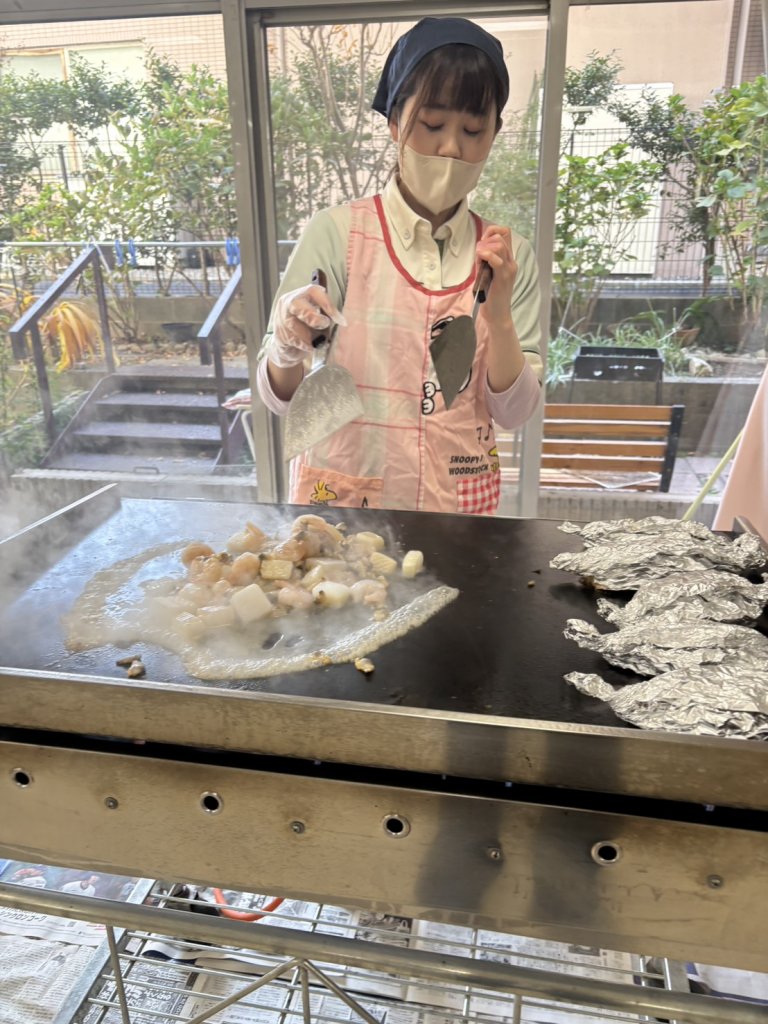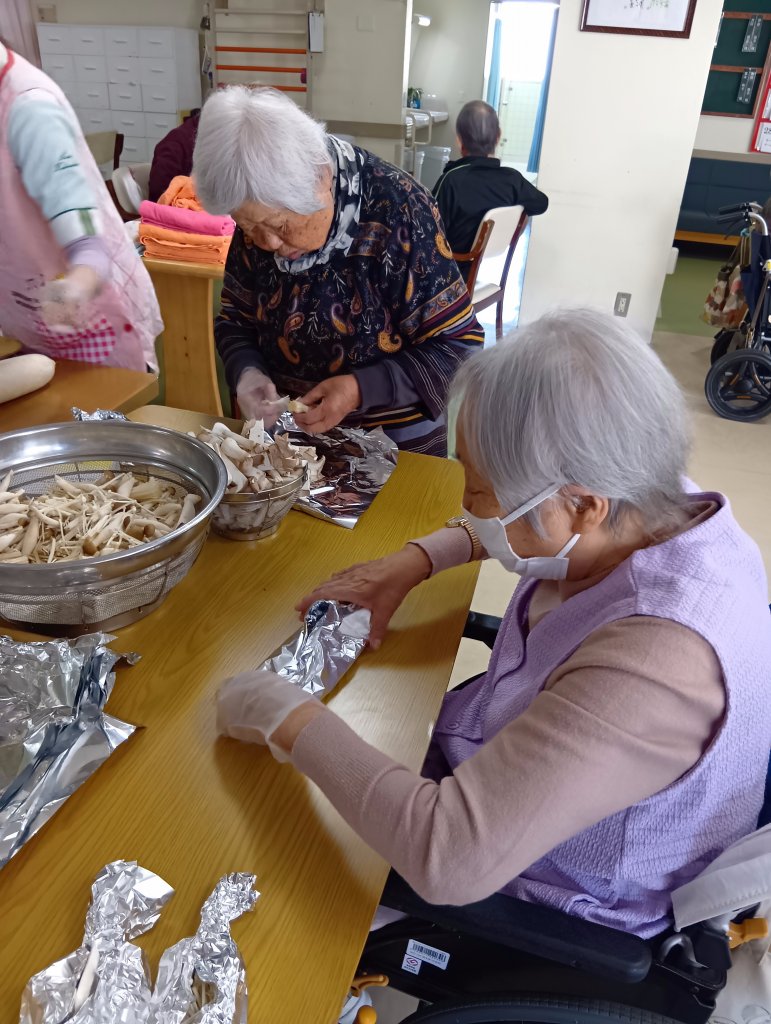 11月30日(日)に愛生苑デイでは、「秋の味覚パーティ」を行いました(*’ω’*) 焼きそばや、ねぎま、キノコのホイル焼きに秋刀魚など、大きな鉄板やバーベキューコンロで調理🍳 皆さまにも手伝っていただきました(^^♪