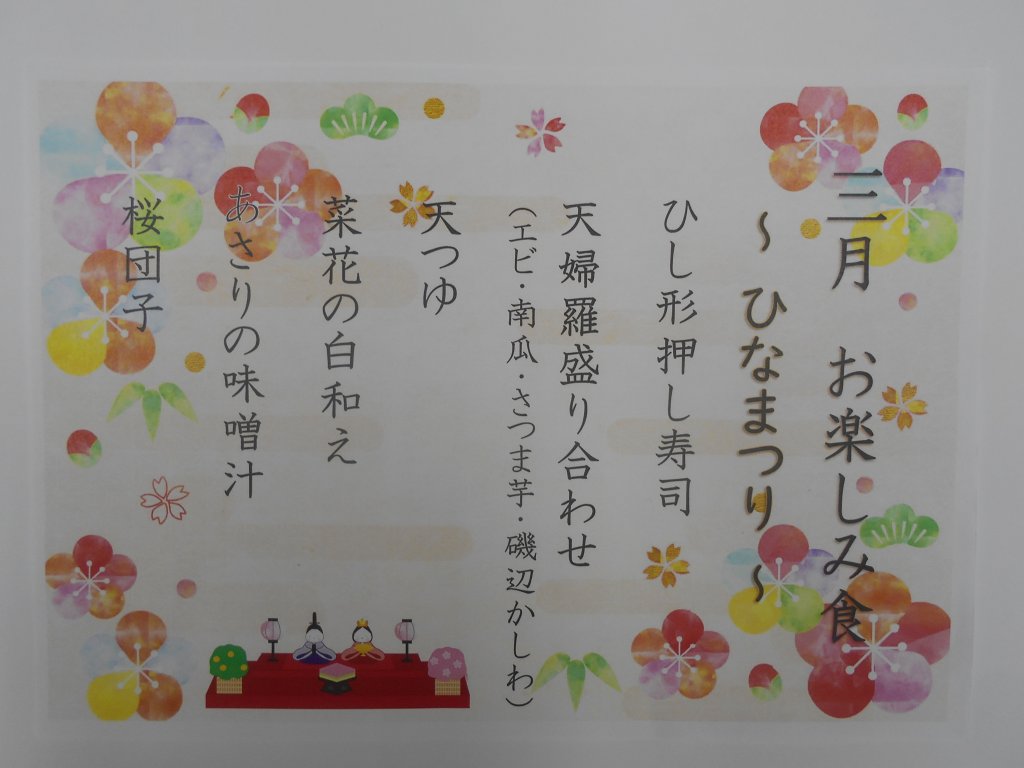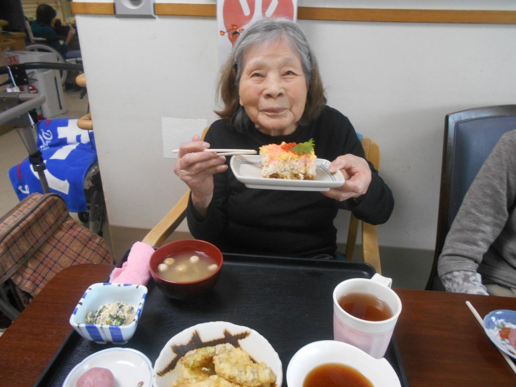 お祝いとともに邪気を祓っていただきたい!ということで、特養・デイサービスともこのようなお食事をご用意しました(≧▽≦)