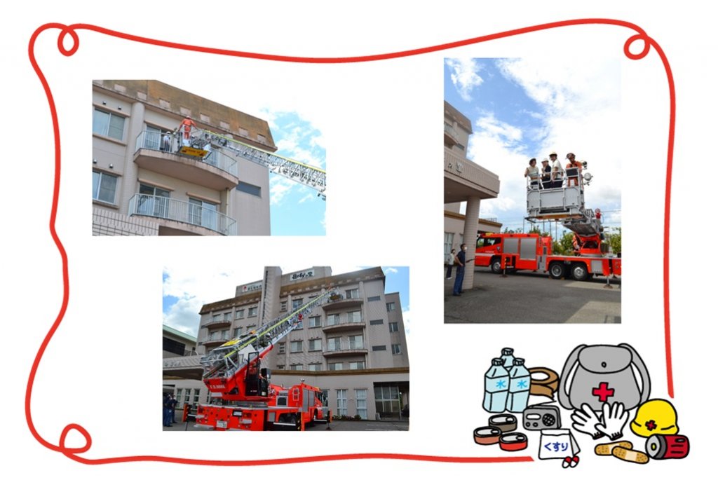防災訓練で丹羽消防署の協力の元、はしご車を使った訓練を行いました!!