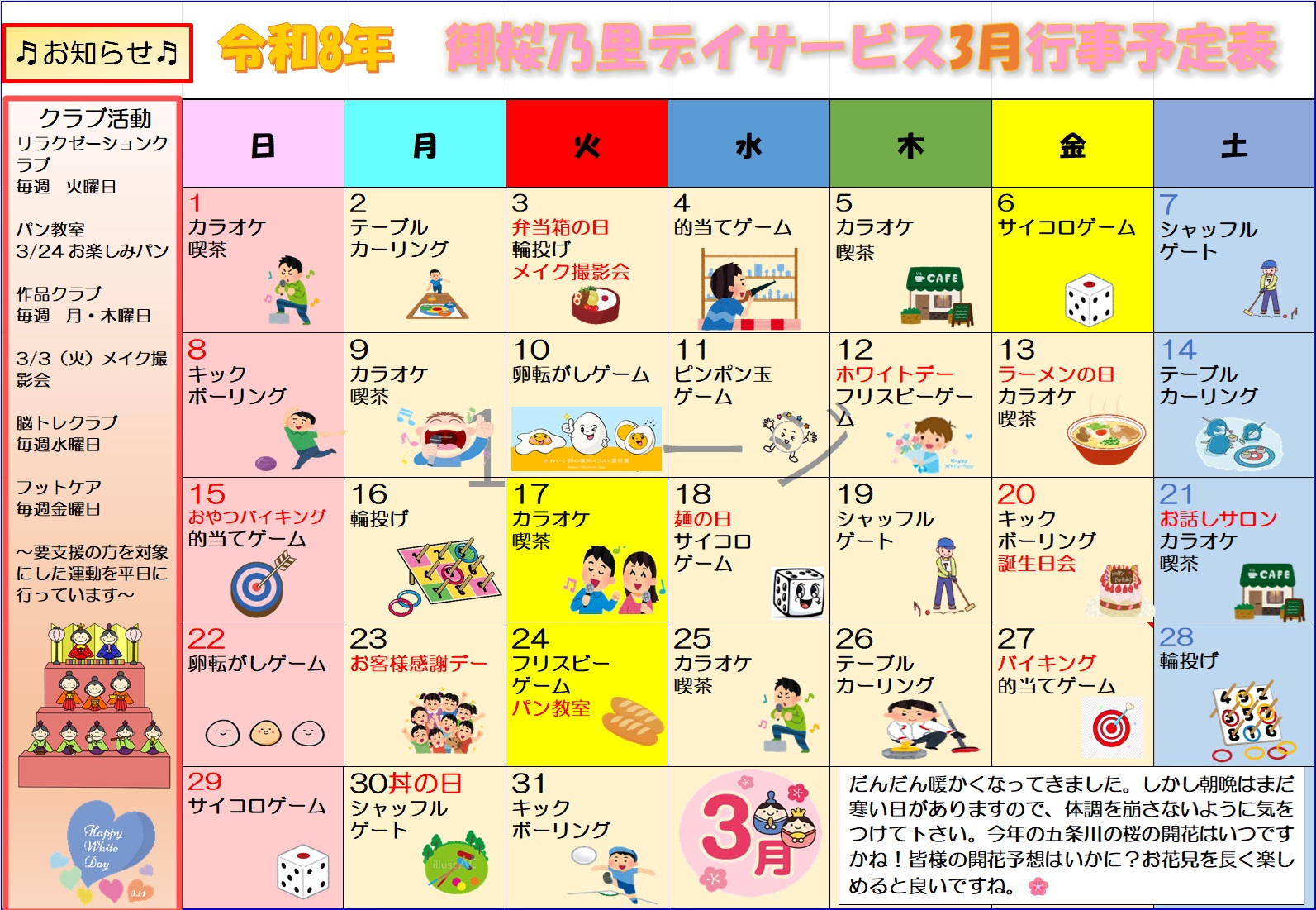 3月の行事予定表のご案内~🌸
