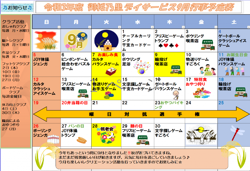 行事予定表のご案内~(^O^)