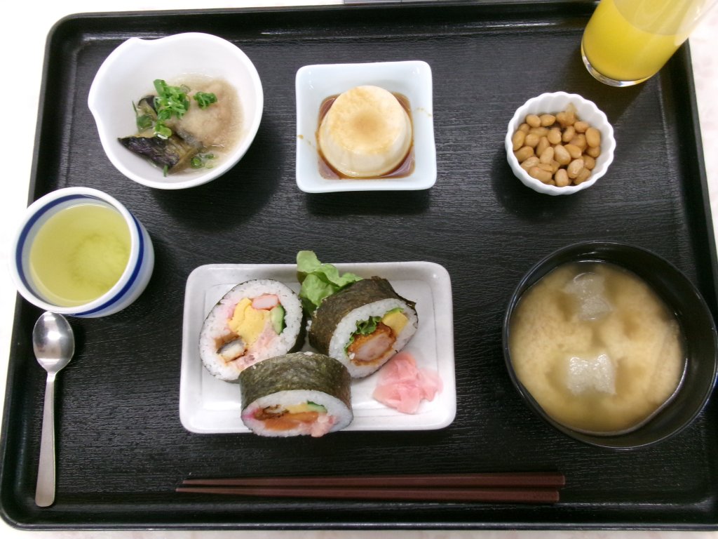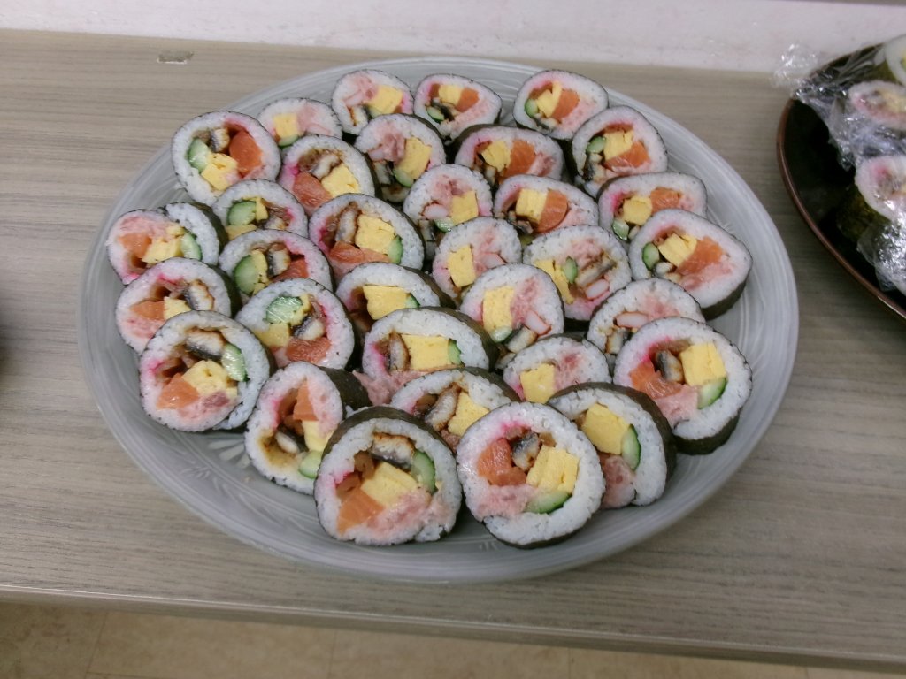 豪華な太巻き 煮豆 きな粉プリン・・・・。