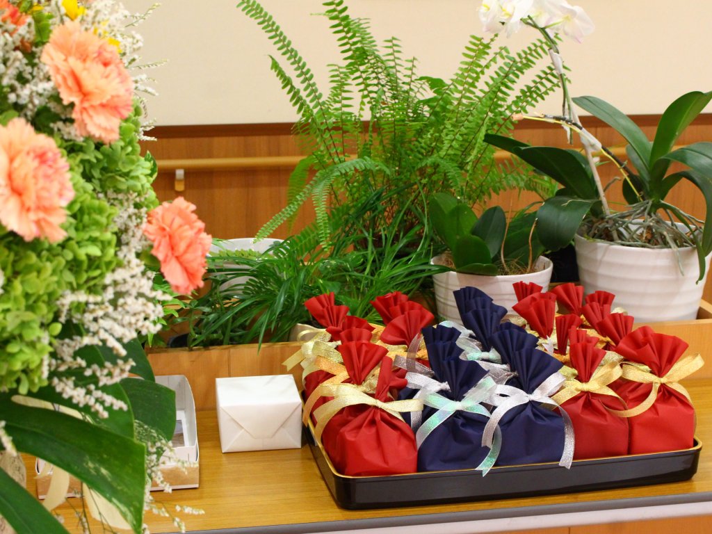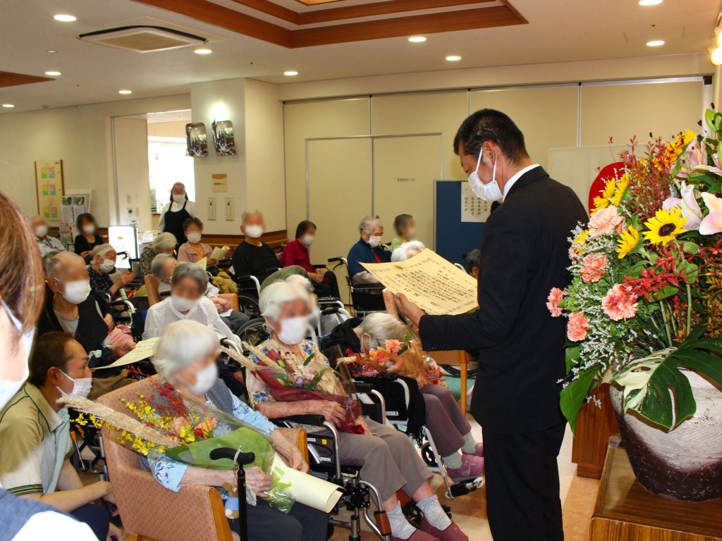 古希、喜寿、傘寿、米寿、卒寿、白寿になられるご利用者に施設より賞状とお祝いの品を贈呈させていただきました。