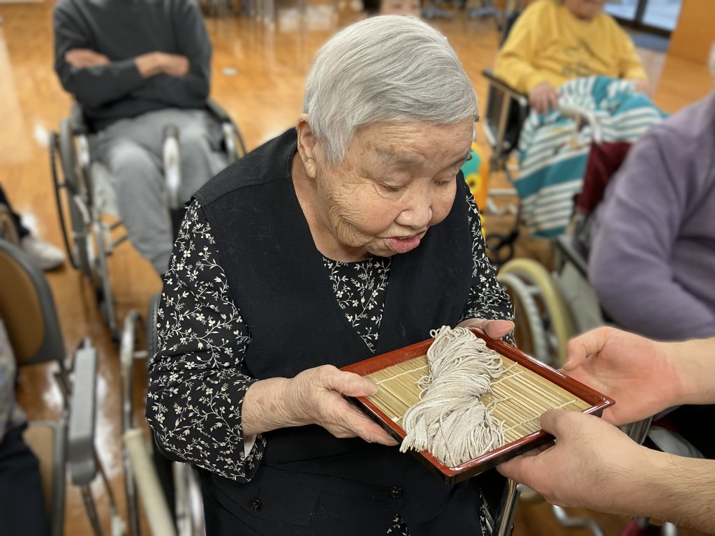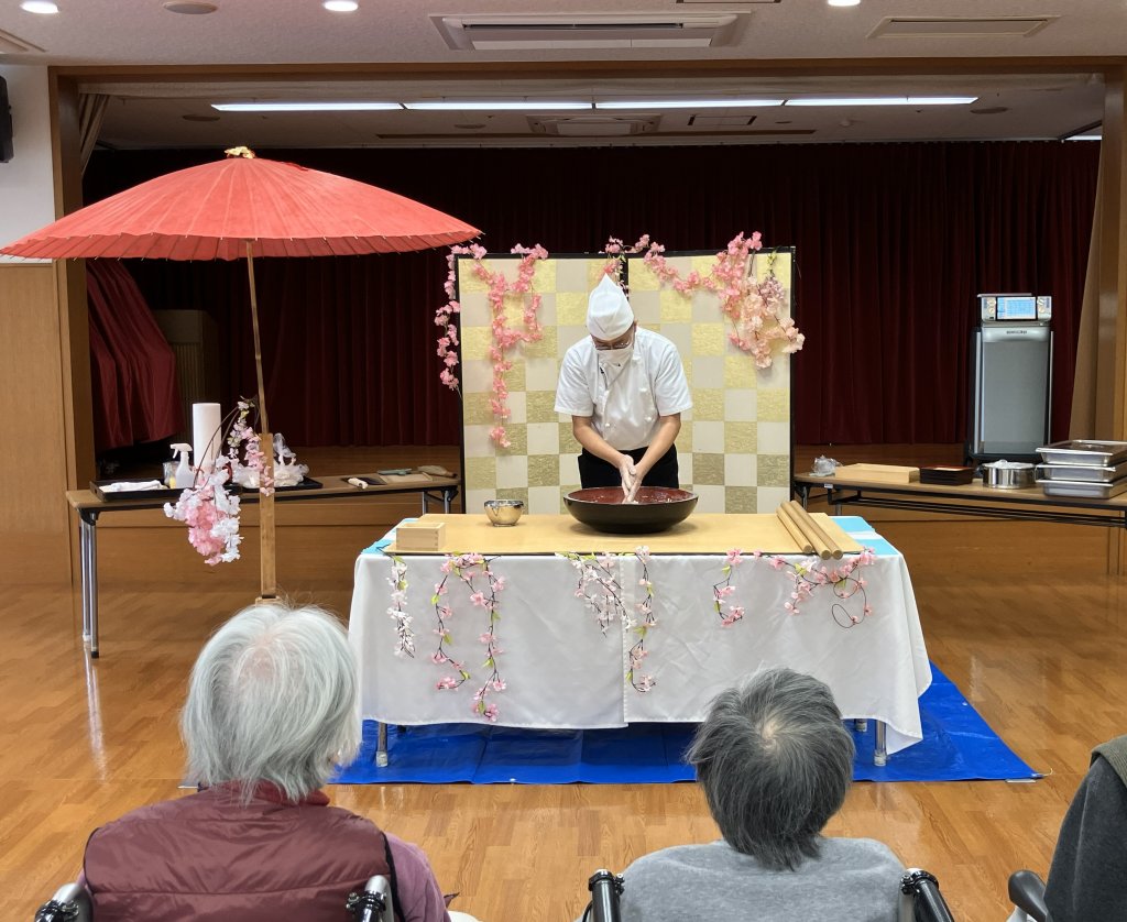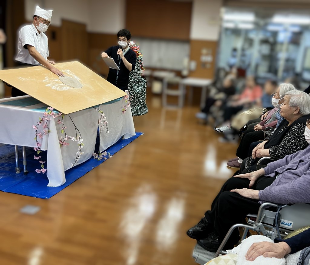 12月31に厨房の職員さんによる蕎麦打ちを披露しました🎵