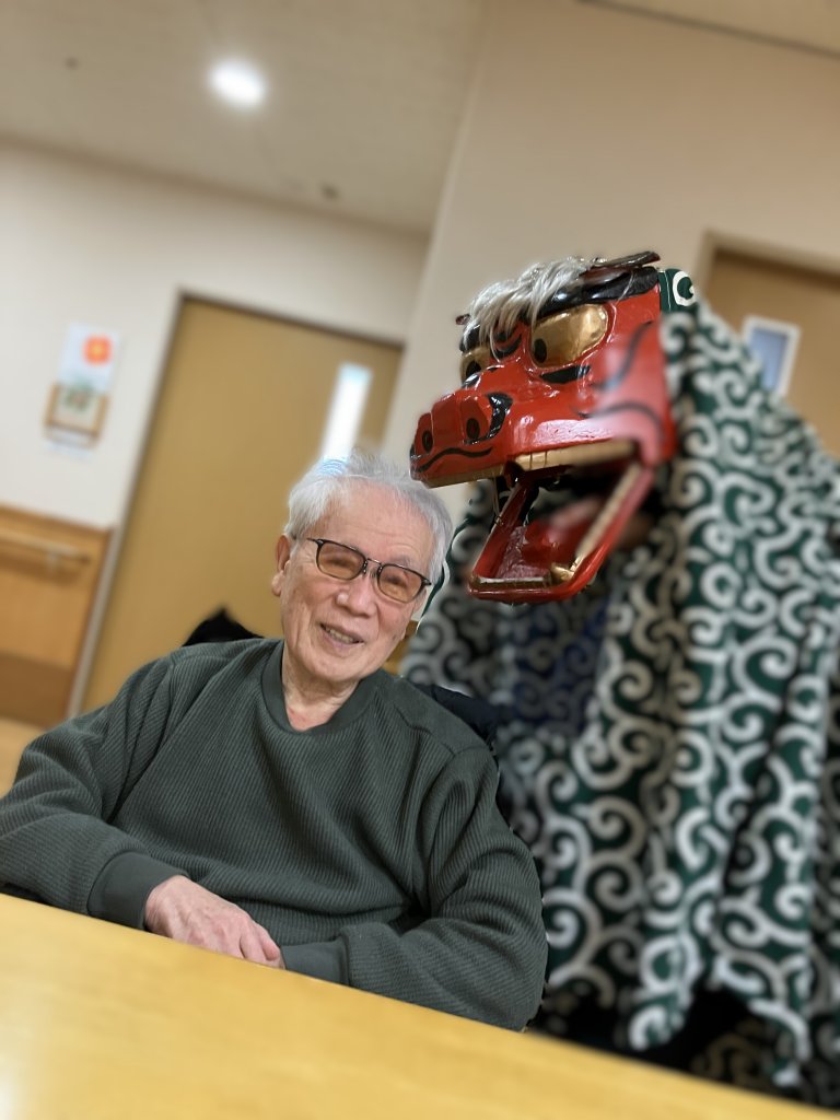 午後からは獅子舞が各ユニットを周り、一緒にお写真をとりました📸