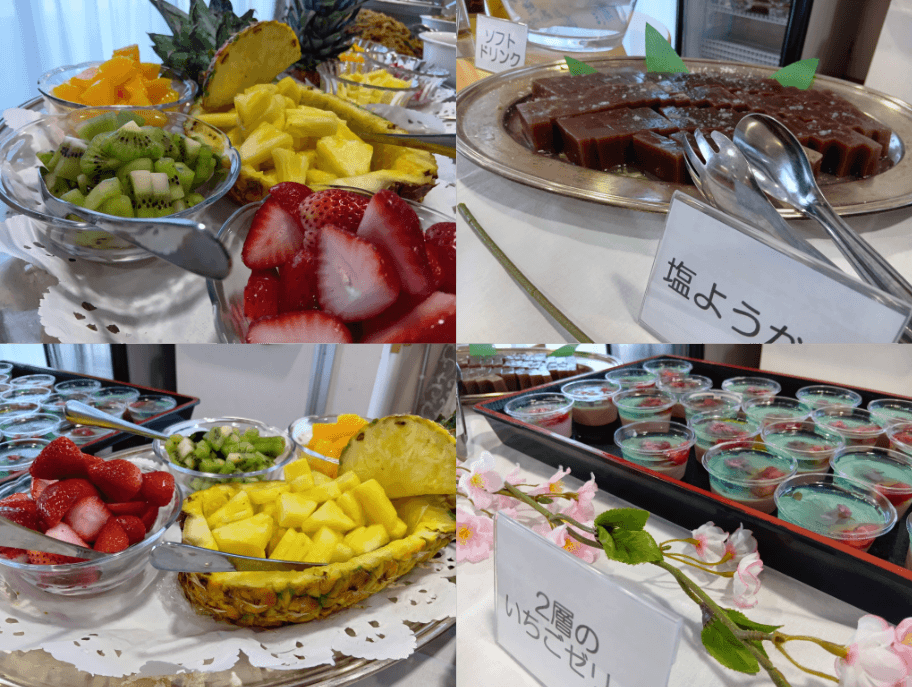 塩味が甘さをより一層際立たせた塩ようかん、一足早く、桜の花をちりばめたイチゴゼリー🍓